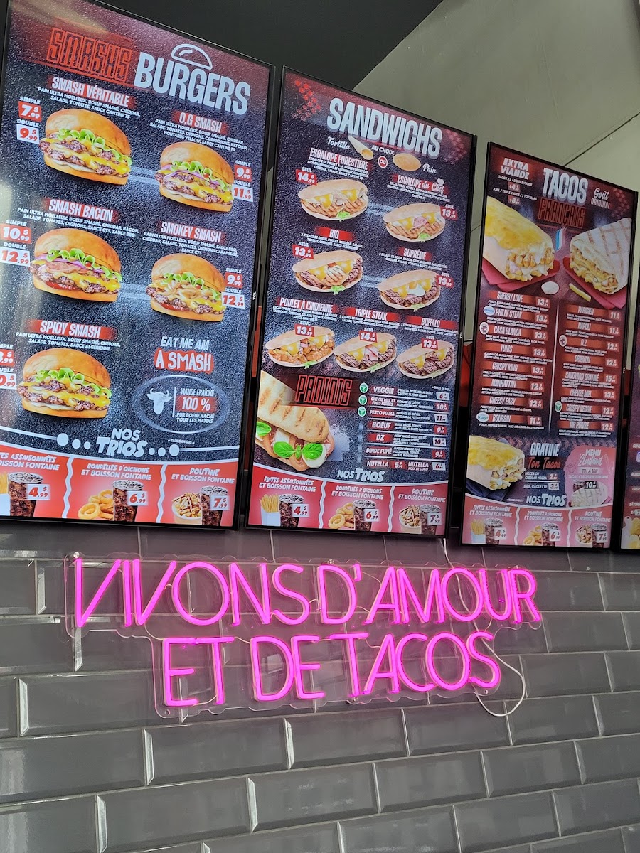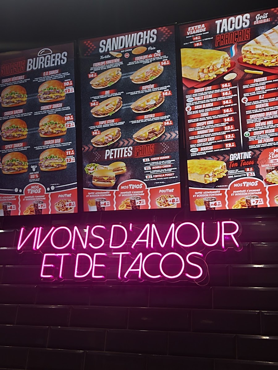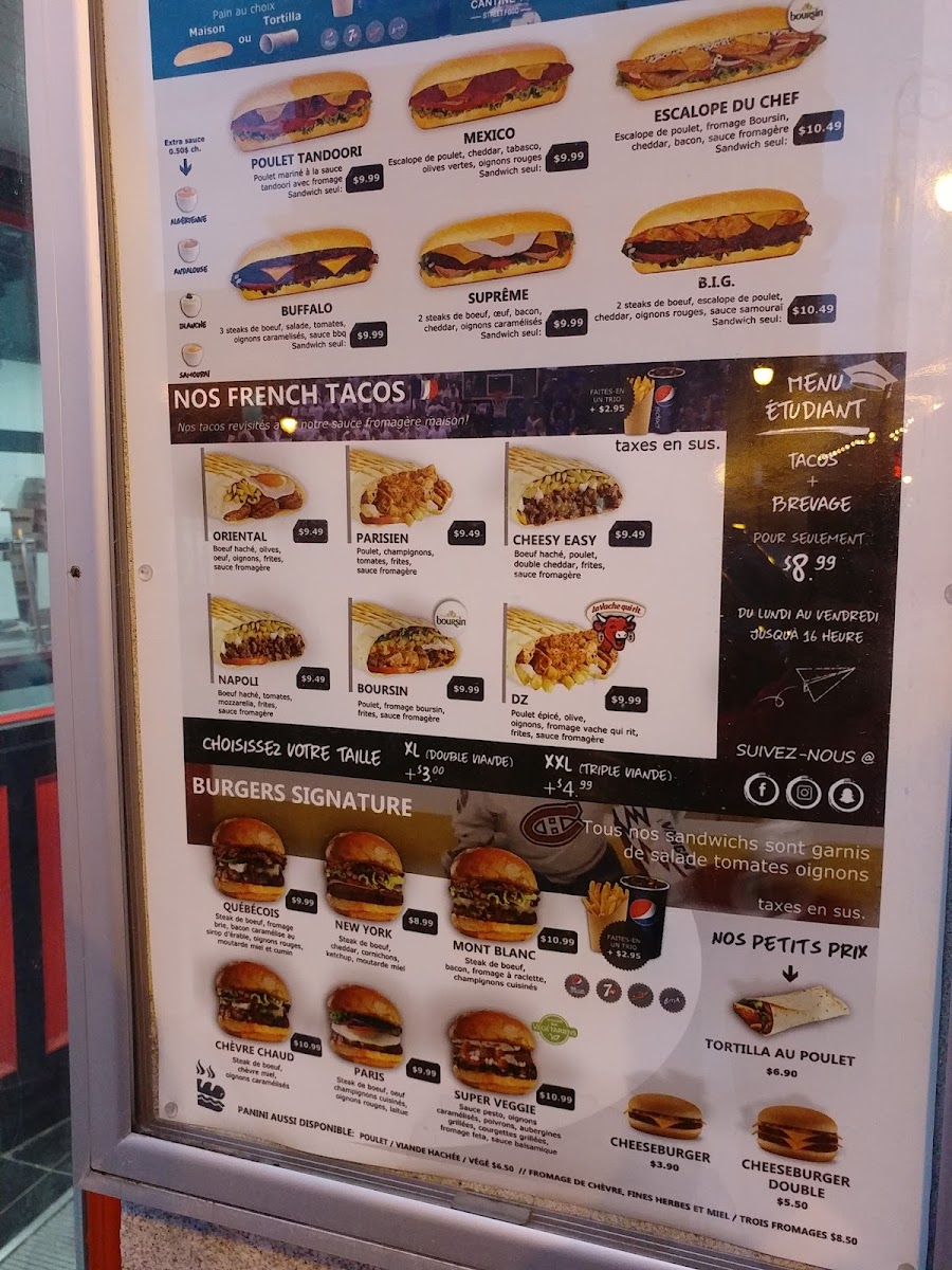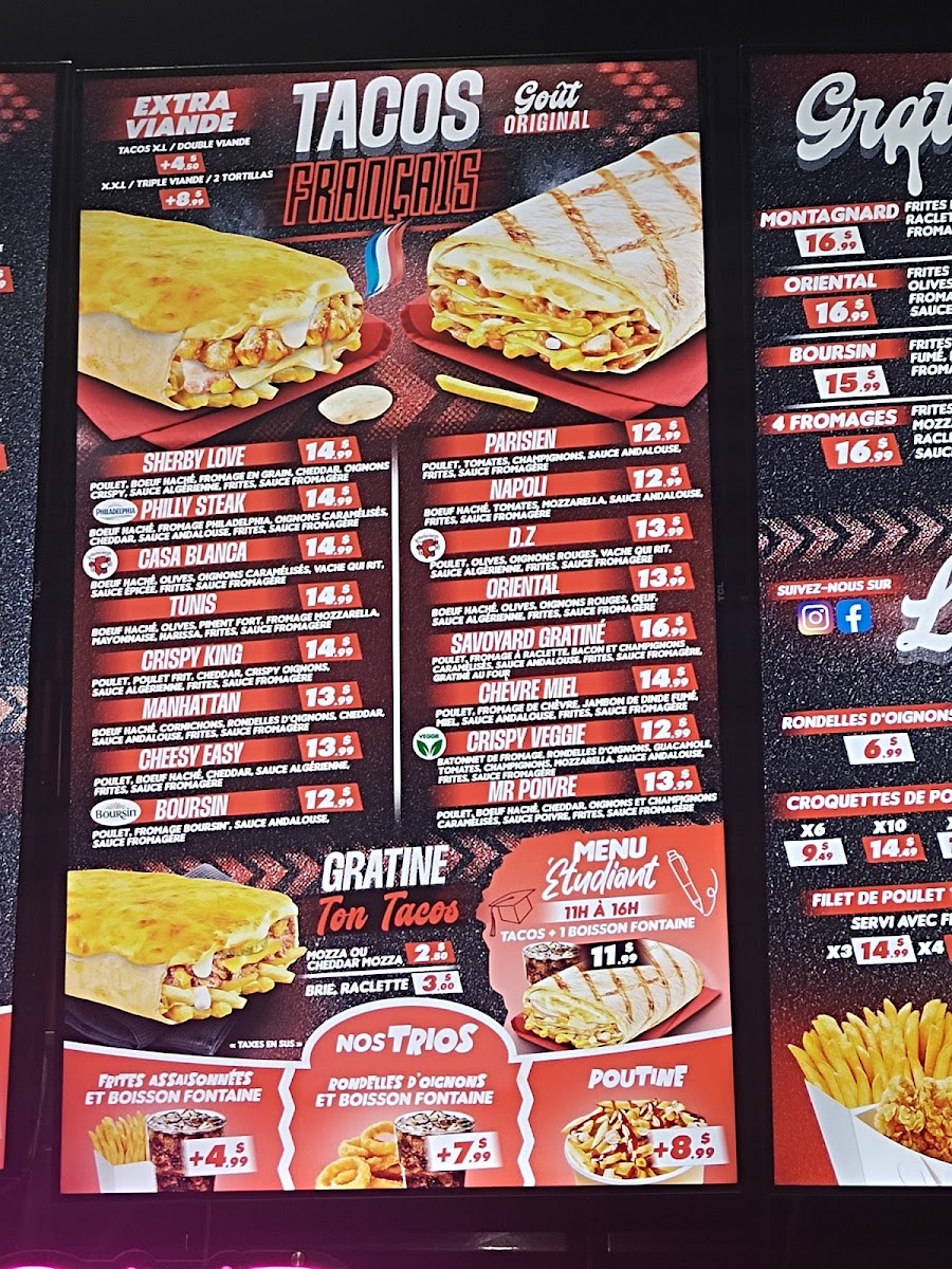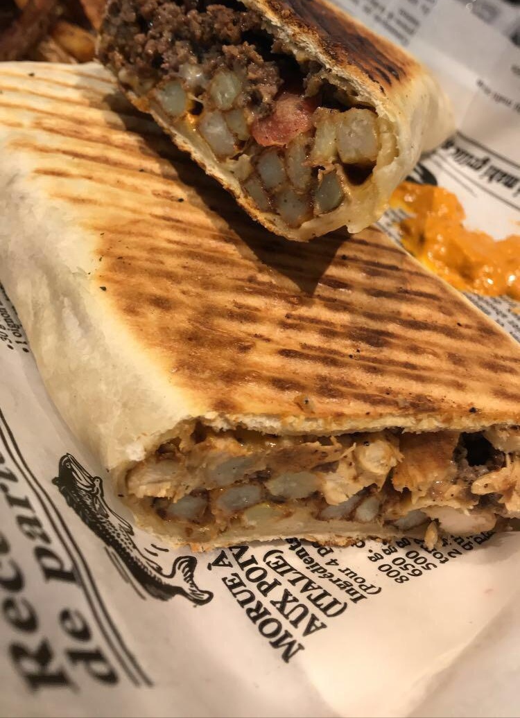If you're in the mood for something equally sumptuous yet different, try the Tacos Français Édition Limitée. Their Savoyard Gratiné with chicken, raclette cheese, bacon, and mushrooms, perfectly complemented by a drizzle of Andalusian sauce, is a must-try for anyone who loves a good fusion of flavors. At CA$18.99, it's an experience worth every penny.